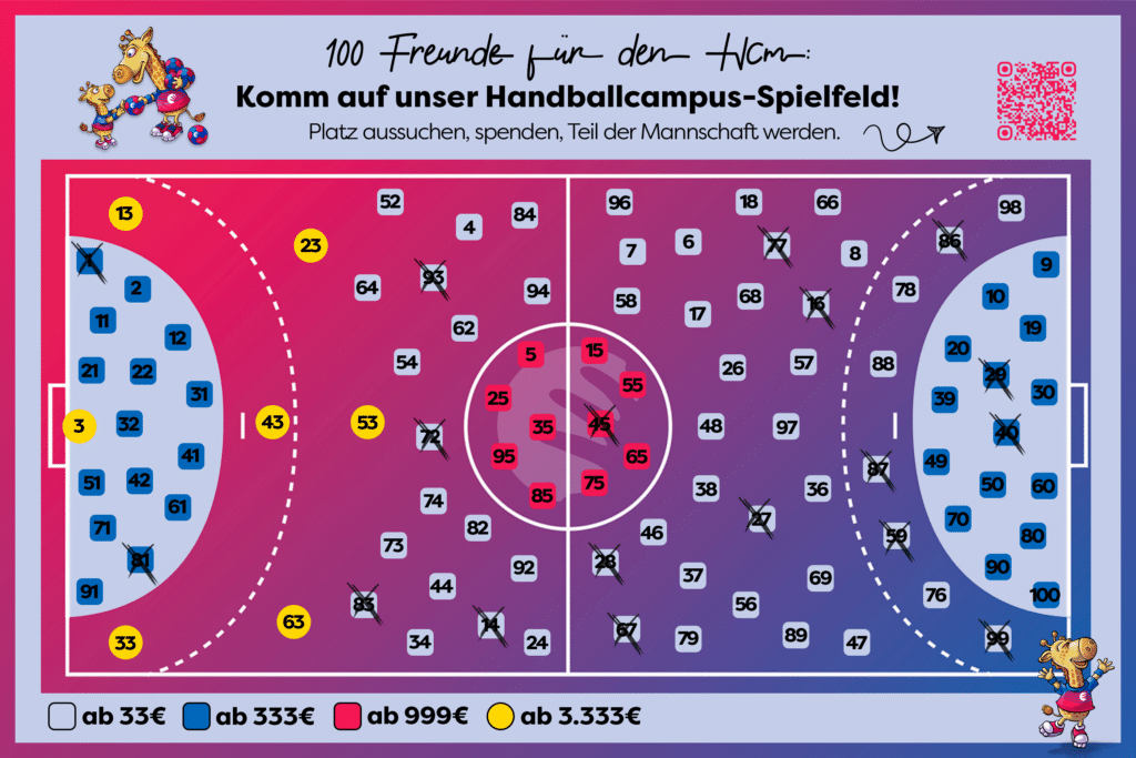 Wir bedanken uns bereits jetzt für EURE Unterstützung und dass ihr an die Idee des Handballcampus glaubt. Unser Versprechen: Deine Unterstützung fließt direkt in Nachwuchsarbeit sowie Camps und Schulprojekten.